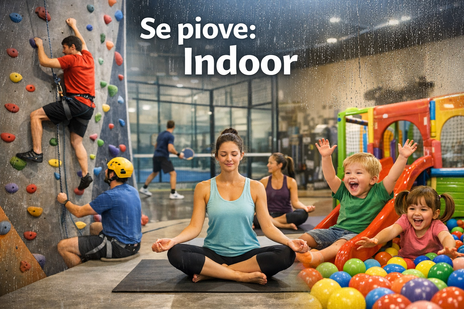 Piove? Ecco cosa fare oggi Se piove e anche tu non sai cosa fare clicca qui per scoprire le attività indoor Non hai tempo di organizzarti? Ci penso io! Apri la mappa per scoprire cosa ti aspetta Scegli scenario meteo 1. Pioggia 2. Nuvoloso 3. Freddo 4. Neve